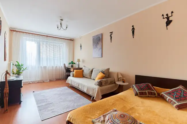 В квартире есть всё для комфортного краткосрочного проживания, пары или семьи с ребёнком. Кровать и диван. Мы не селим младше 25ти лет.